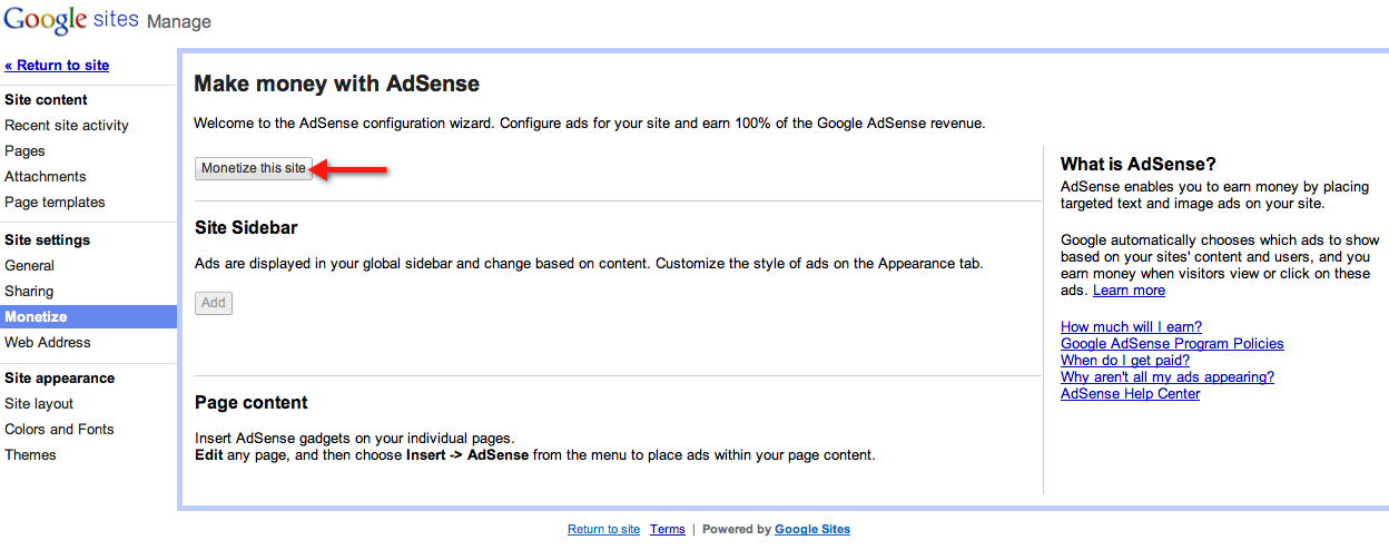Adding AdSense to your Google Site is easy. Just follow these steps: